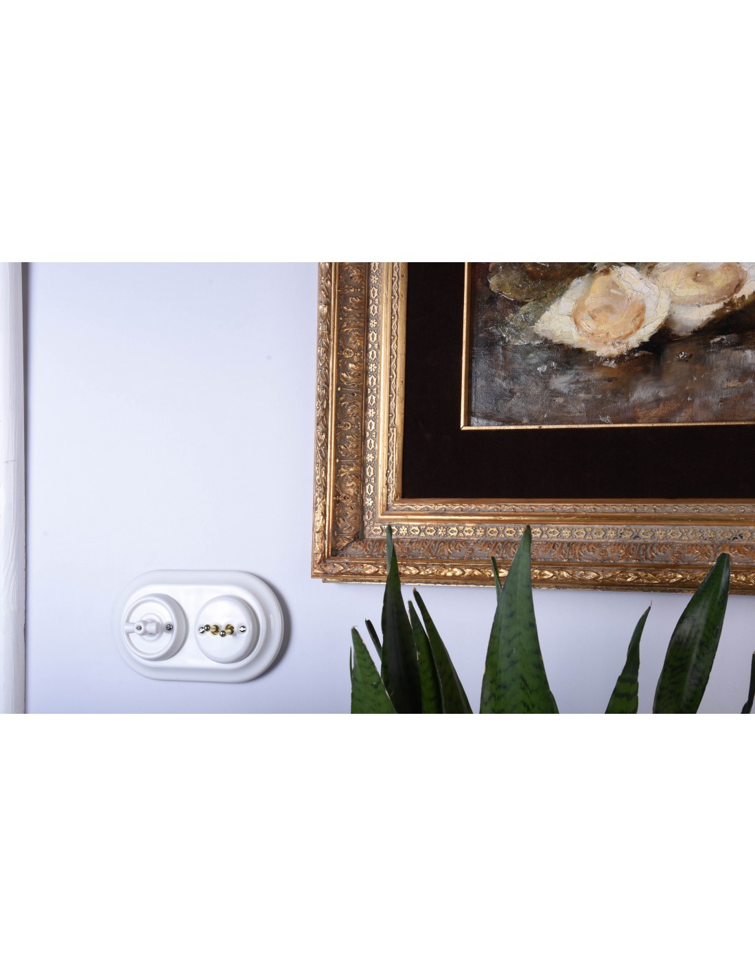 Schalter und Steckdosen werden im Set mit einzelnen keramischen Rahmen oder ohne Rahmen verkauft (Einzelrahmen aus Holz sind in unseren anderen Angeboten erhältlich). Um ein Set aus mehreren Elementen (Steckdosen, Schalter) zu erstellen, muss eine Steckdose oder ein Schalter ohne Rahmen gekauft und zusätzliche doppelte, dreifache oder vierfache Rahmen erworben werden. Für Unterputz-Ausstattungen bieten wir keramische und holzene Rahmen an.