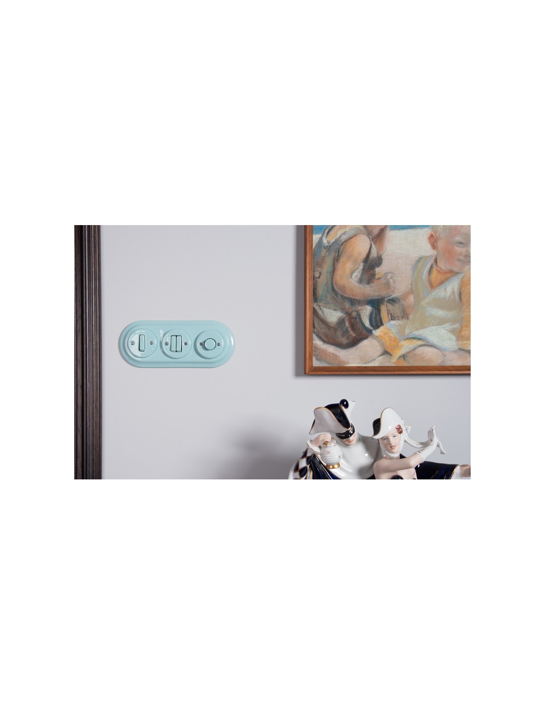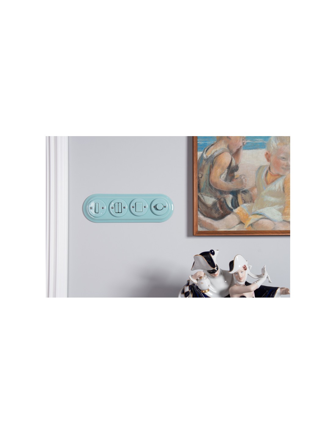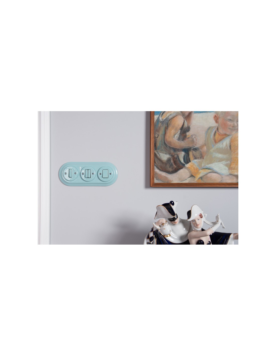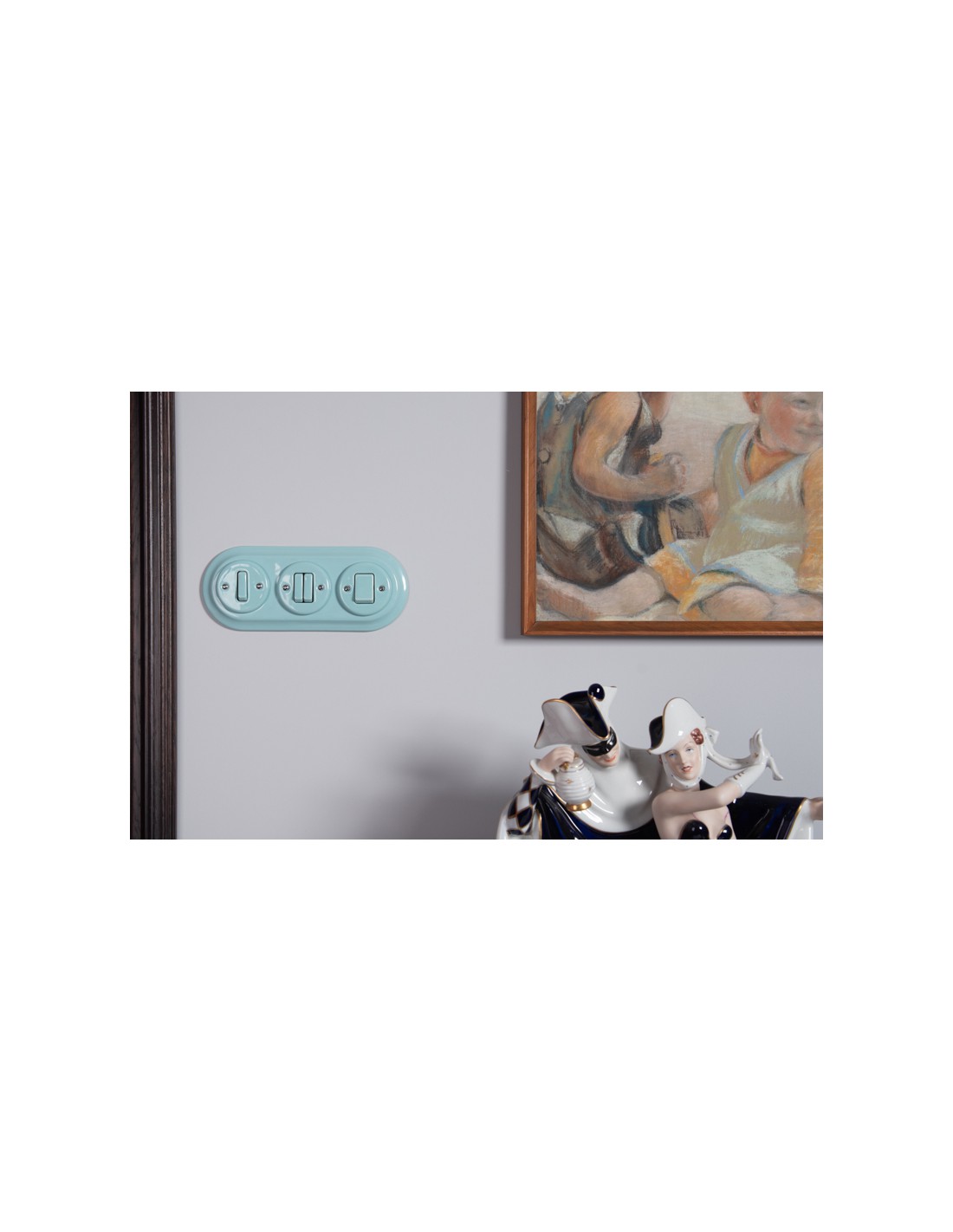 Schalter und Steckdosen werden im Set mit einzelnen Keramikrahmen oder OHNE Rahmen verkauft (einzelne Holzrahmen sind in unseren anderen Auktionen erhältlich). Wenn Sie ein Set aus mehreren Elementen (Steckdosen, Schaltern) zusammenstellen möchten, müssen Sie eine Steckdose oder einen Schalter ohne Rahmen kaufen und zusätzliche doppelte, dreifache oder vierfache Rahmen erwerben. In dieser Serie bieten wir für Unterputz-Zubehör sowohl keramische als auch Holzrahmen an.
