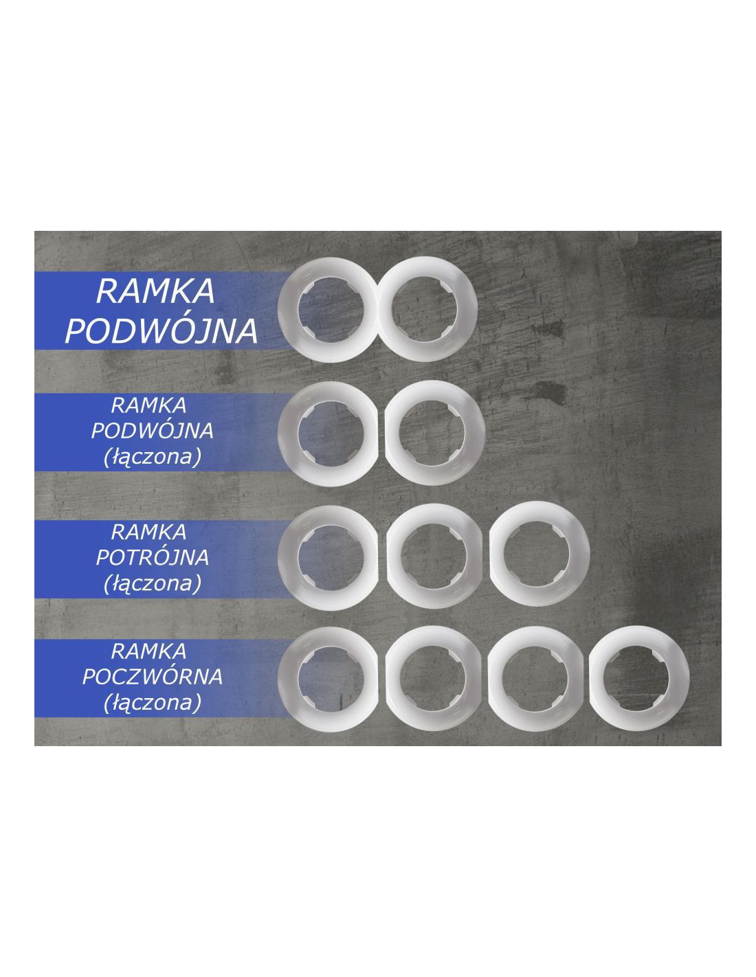 Steckdosen und Schalter werden ohne Rahmen verkauft. Um ein Set aus mehreren Elementen (Steckdosen, Schalter) zu erstellen, müssen Sie eine Steckdose oder einen Schalter kaufen und zusätzlich Rahmen (Doppel-, Dreifach-, End- und Mittelrahmen) je nach Bedarf erwerben.