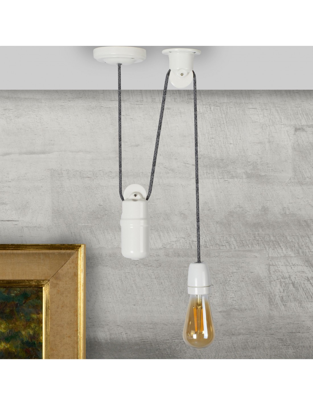 Es wird in Beleuchtungsinstallationen eingesetzt, um die Höhe der Leuchte / des Lampenschirms zu regulieren. Die Höhenverstellung erfolgt durch das Beschweren des Gegengewichts mit einem beliebigen Material, das individuell nach Bedarf in seinem Inneren platziert wird.